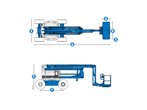 • Equipada en estándar de un plumín de 1,83m con 90° de alcance de trabajo por debajo de la horizontal